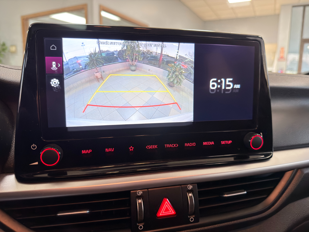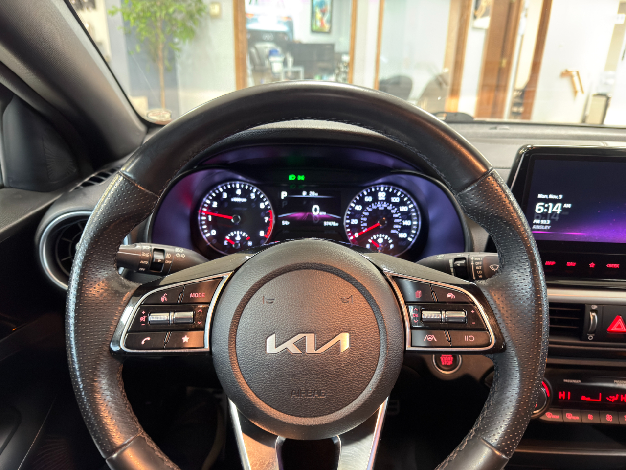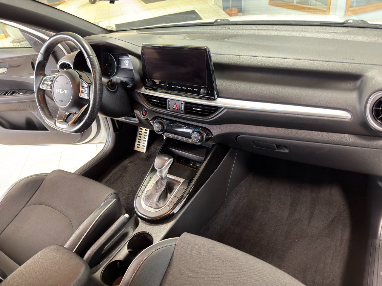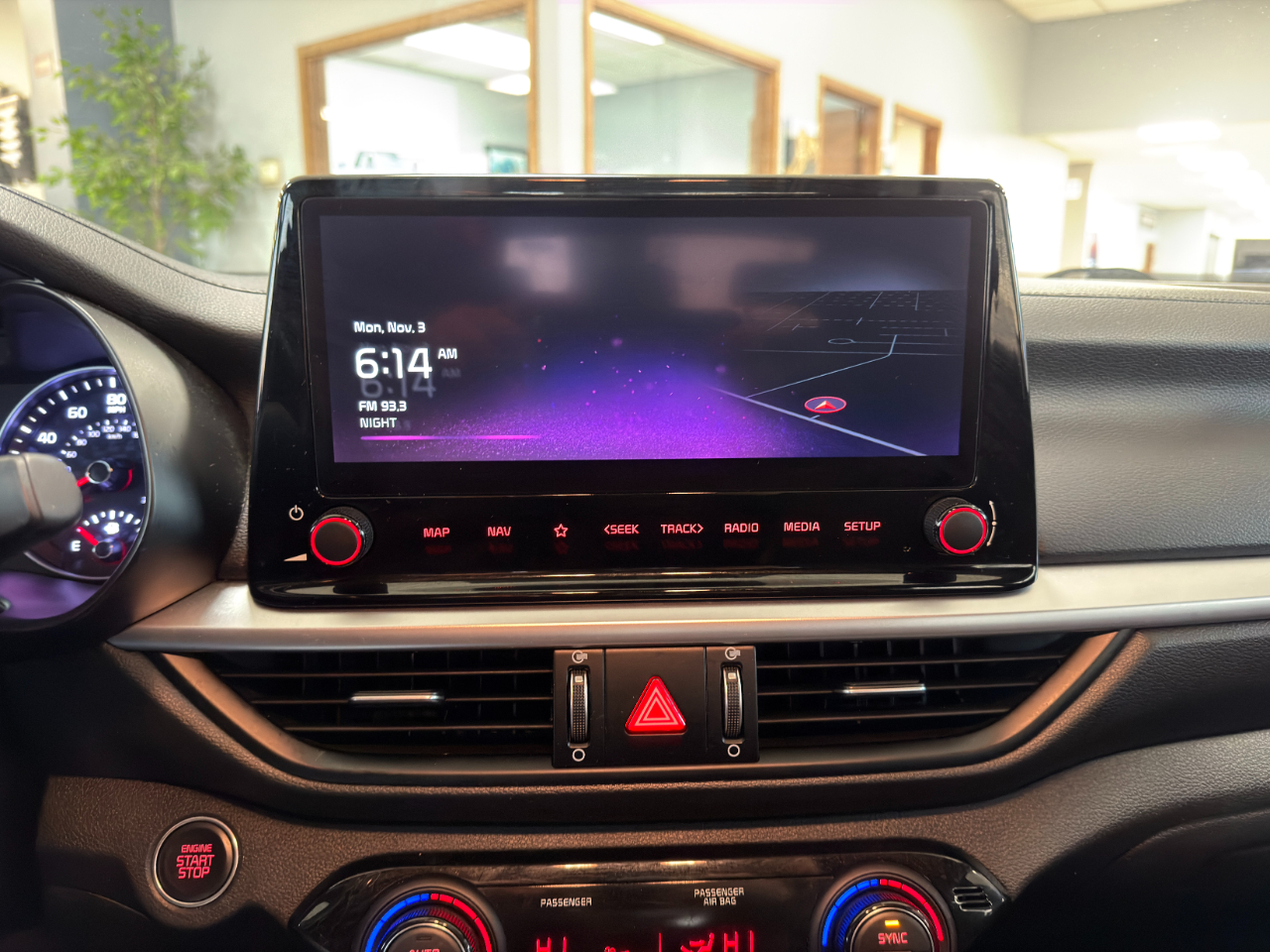 2022 Kia Forte with 2.0L 4-Cyl Engine. Equipped with blindspot sensors, dual zone A/C, navigation, backup camera, parking sensors, push to start, lane change warning, lane keep assist, forward collision system, remote start, cloth/leather seats, touch screen, keyless entry, power windows, cruise control, heated side mirrors, fog lamps, Apple Carplay, Android Auto, USB, and more! Standard 29/39 city/highway MPG with only 37k miles!