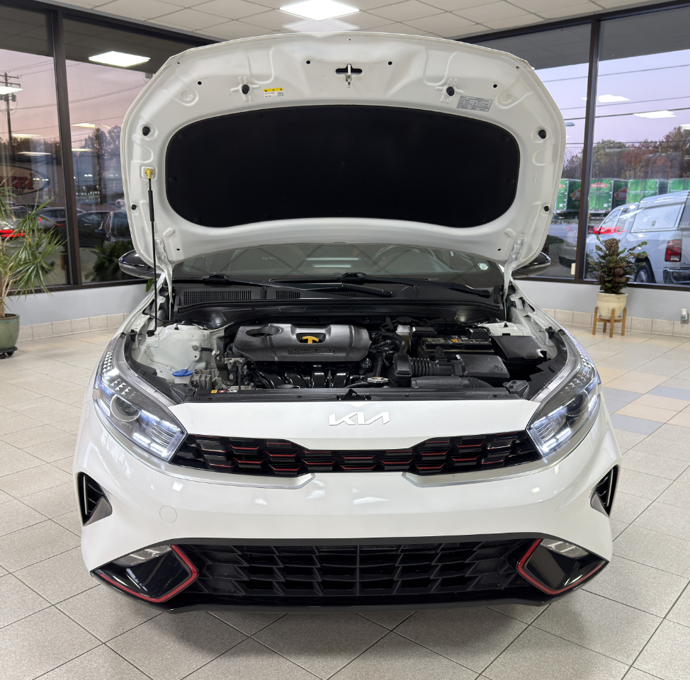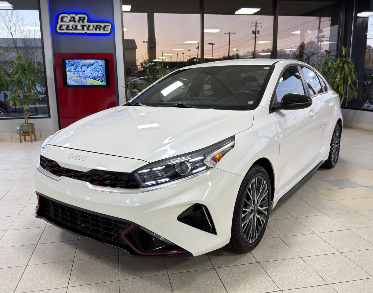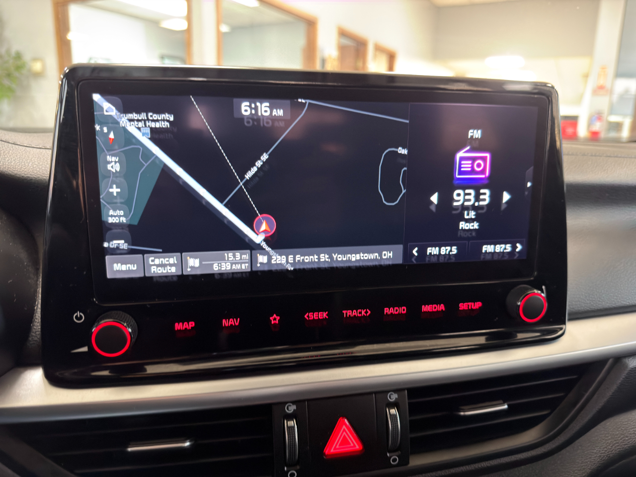 2022 Kia Forte with 2.0L 4-Cyl Engine. Equipped with blindspot sensors, dual zone A/C, navigation, backup camera, parking sensors, push to start, lane change warning, lane keep assist, forward collision system, remote start, cloth/leather seats, touch screen, keyless entry, power windows, cruise control, heated side mirrors, fog lamps, Apple Carplay, Android Auto, USB, and more! Standard 29/39 city/highway MPG with only 37k miles!