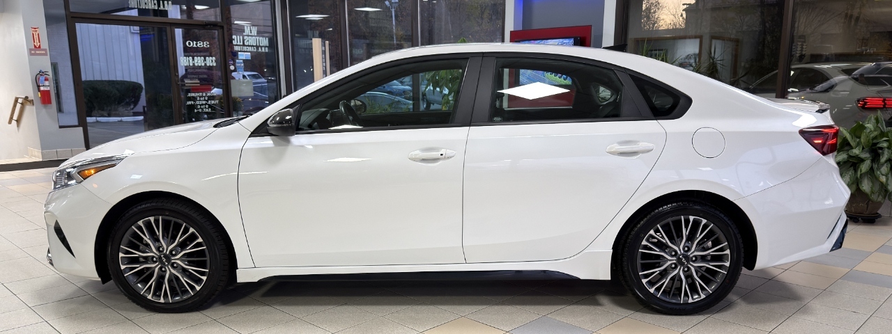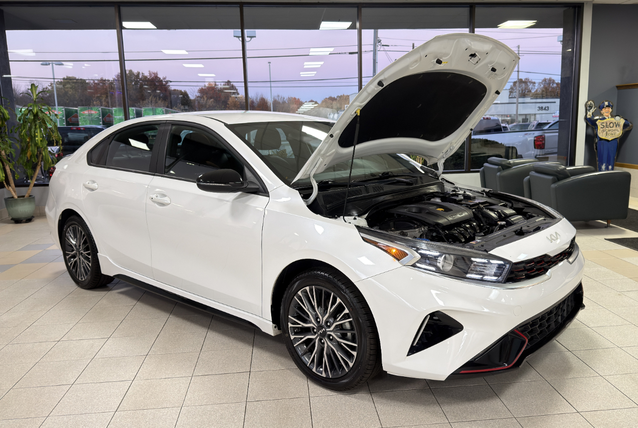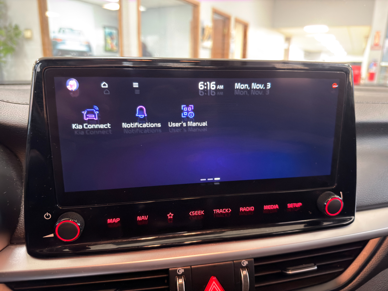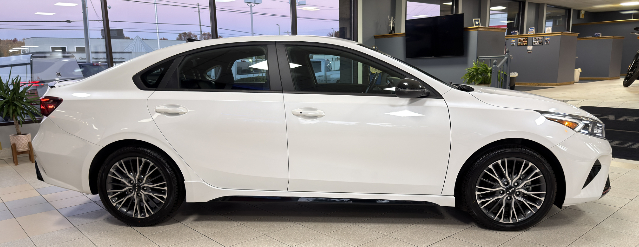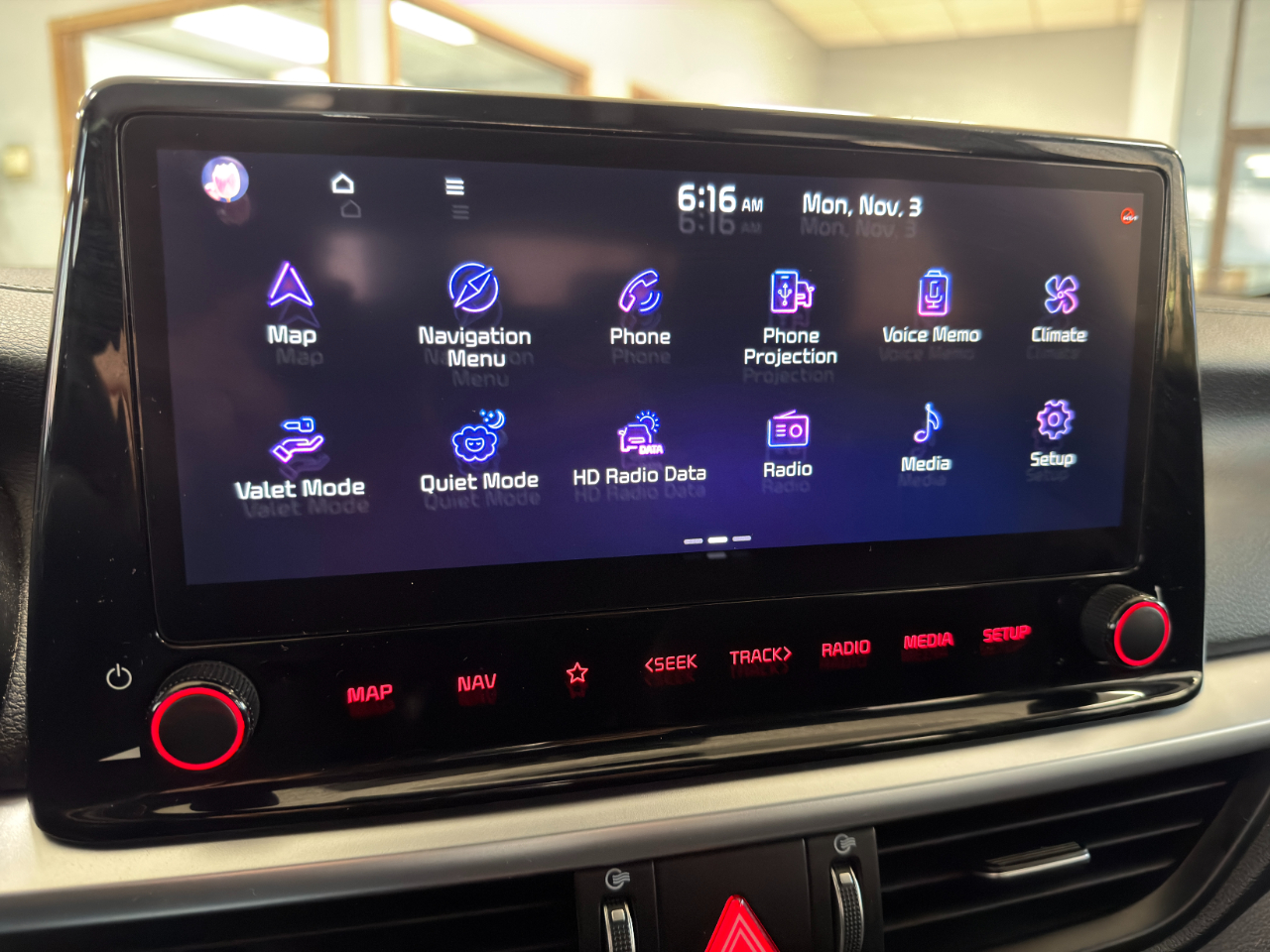 2022 Kia Forte with 2.0L 4-Cyl Engine. Equipped with blindspot sensors, dual zone A/C, navigation, backup camera, parking sensors, push to start, lane change warning, lane keep assist, forward collision system, remote start, cloth/leather seats, touch screen, keyless entry, power windows, cruise control, heated side mirrors, fog lamps, Apple Carplay, Android Auto, USB, and more! Standard 29/39 city/highway MPG with only 37k miles!