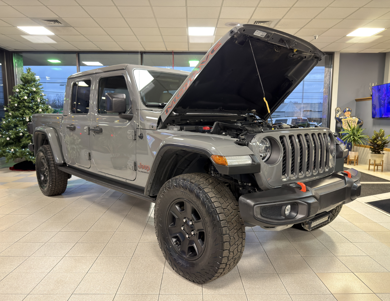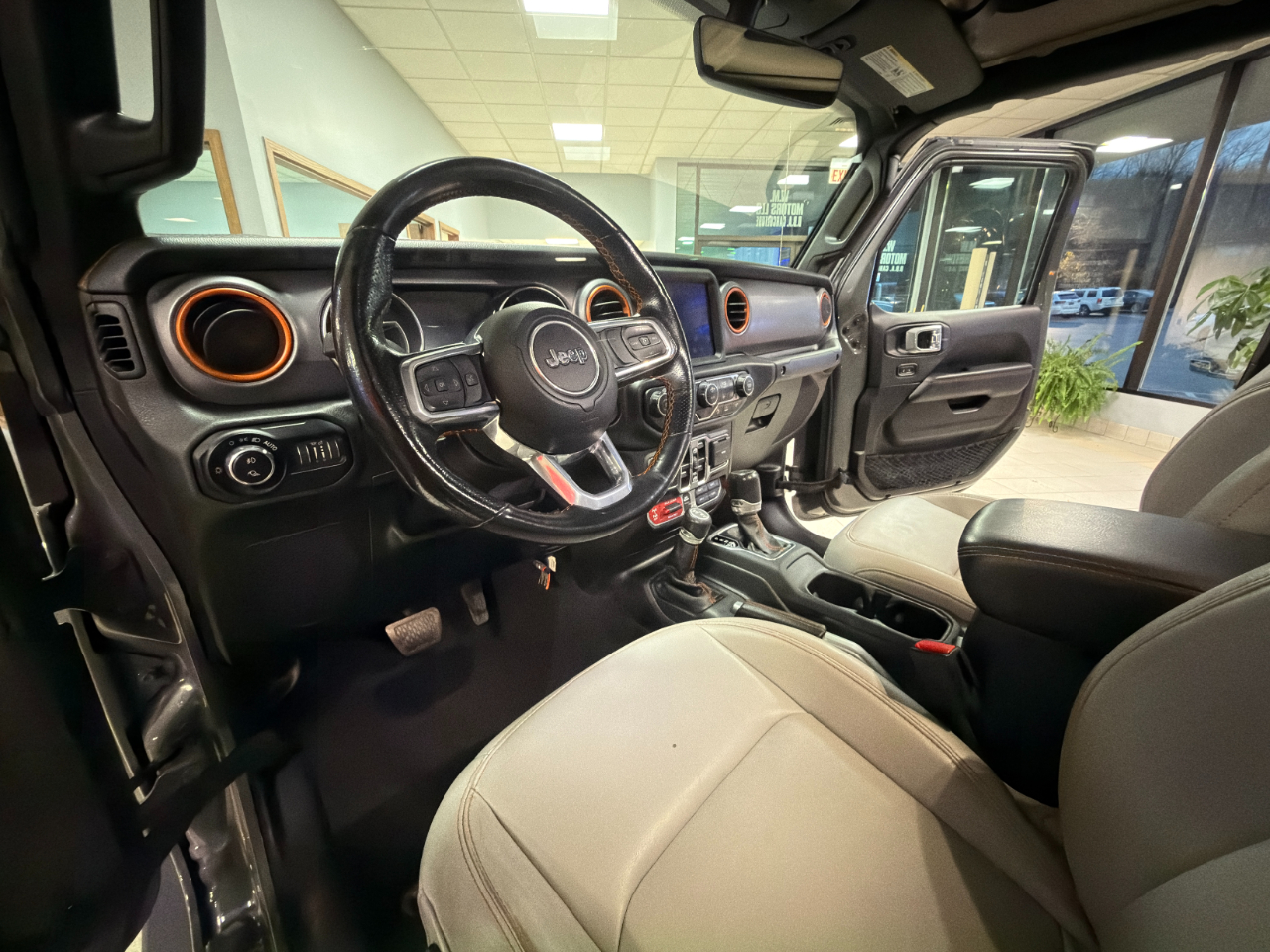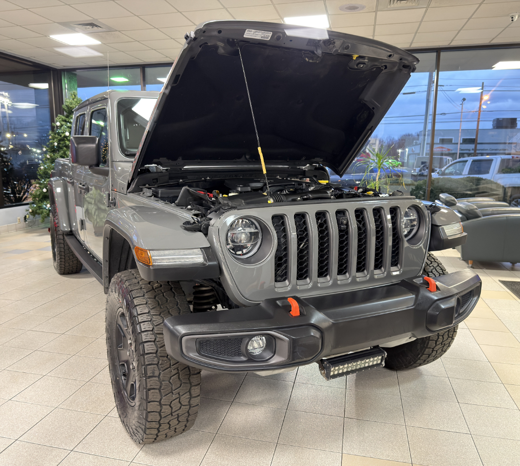 2021 Jeep Gladiator with 3.6L V6 Engine. Equipped with 4WD, remote start, proximity entry, push to start, navigation, backup camera, forward facing camera, reverse sensors, removable top, blindspot sensors, heated seats, heated steering wheel, leather seats, dual zone A/C, touch screen, keyless entry, power windows, power locks, tow hitch, bed liner, tow hooks, fog lamps, garage opener, cruise control, Bluetooth, USB, AUX, and more! Only 62k miles!