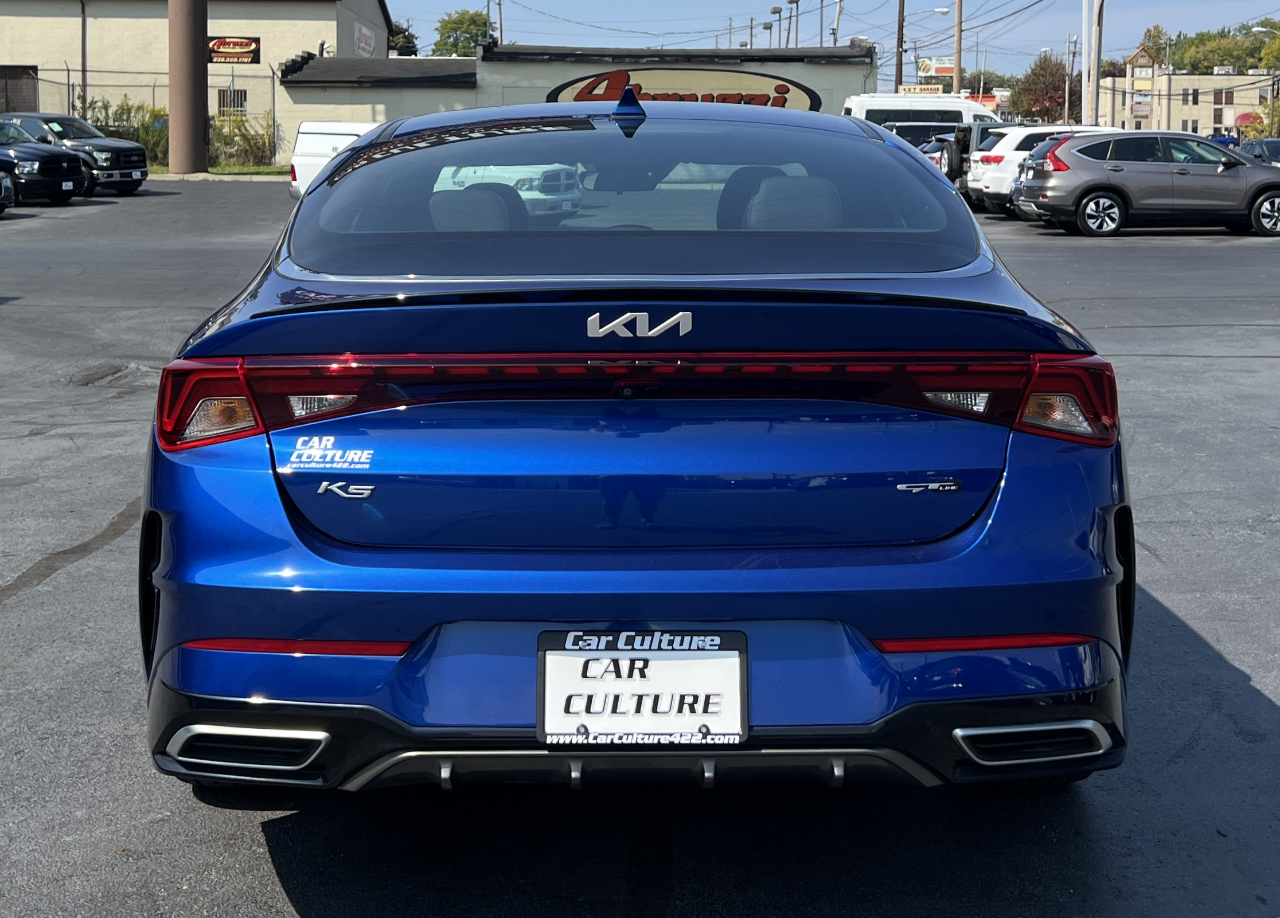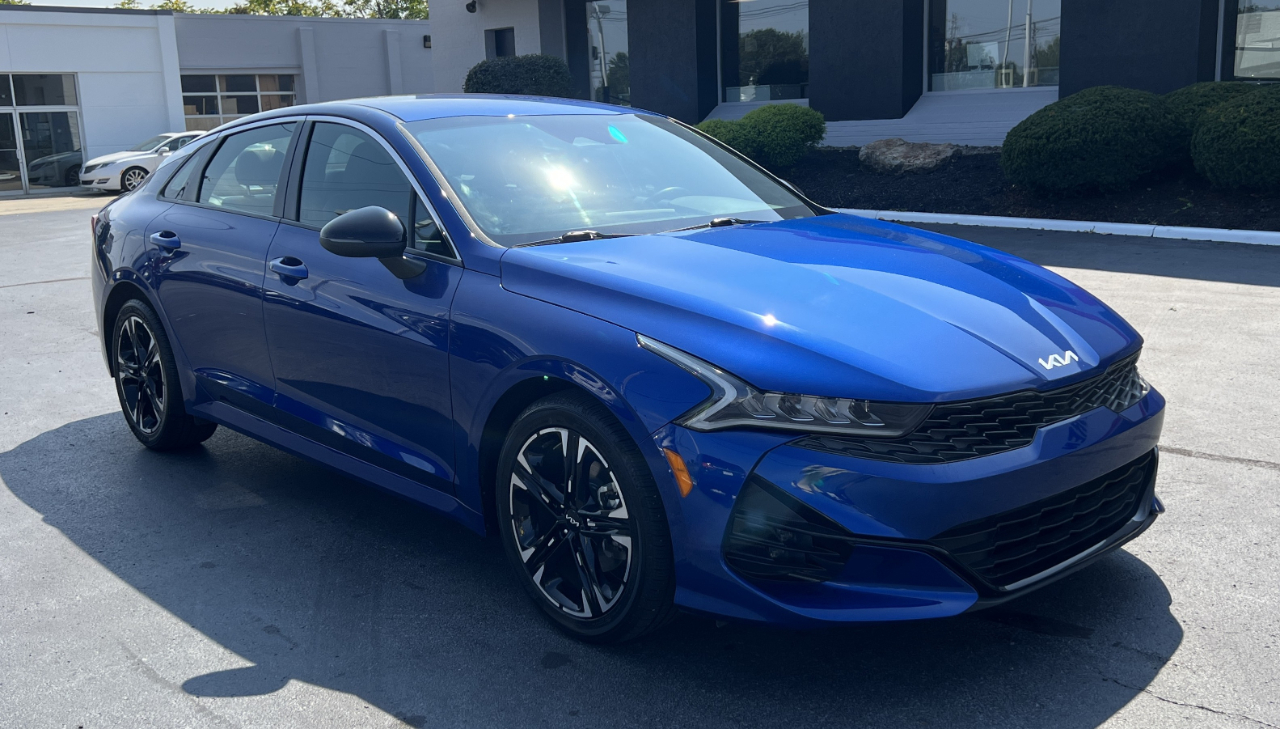 2022 Kia K5 with 1.6L 4-Cyl Turbo. Equipped with premium wheels, remote start, leather/cloth seats, push to start, automatic high beam assist, backup camera, navigation, blindspot sensors, lane keep assist, forward collision avoidance system, touch screen, wireless charger, dual zone A/C, keyless entry, power windows, power locks, power driver's seat, Apple Carplay, Android Auto, USB, and more! Standard 27/37 city/highway MPG with only 35k miles!