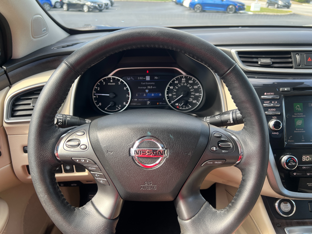 2019 Nissan Murano with 3.5L V6 Engine. Equipped with AWD, parking sensors, backup camera, leather seats, remote start, memory seat, heated front and rear seats, ventilated front seats, navigation, touch screen, lane keep assist and warning, automatic emergency braking and collision warning, BOSE Sound, panoramic roof, adaptive cruise control, push to start, blindspot sensors, dual zone A/C, power liftgate, keyless entry, power windows, power locks, power seats, power adjustable steering wheel, garage opener, Apple Carplay, Android Auto, AUX, USB, CD, and more! Standard 20/28 city/highway MPG with only 77k miles!