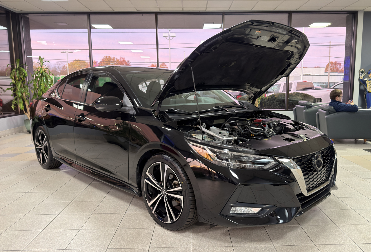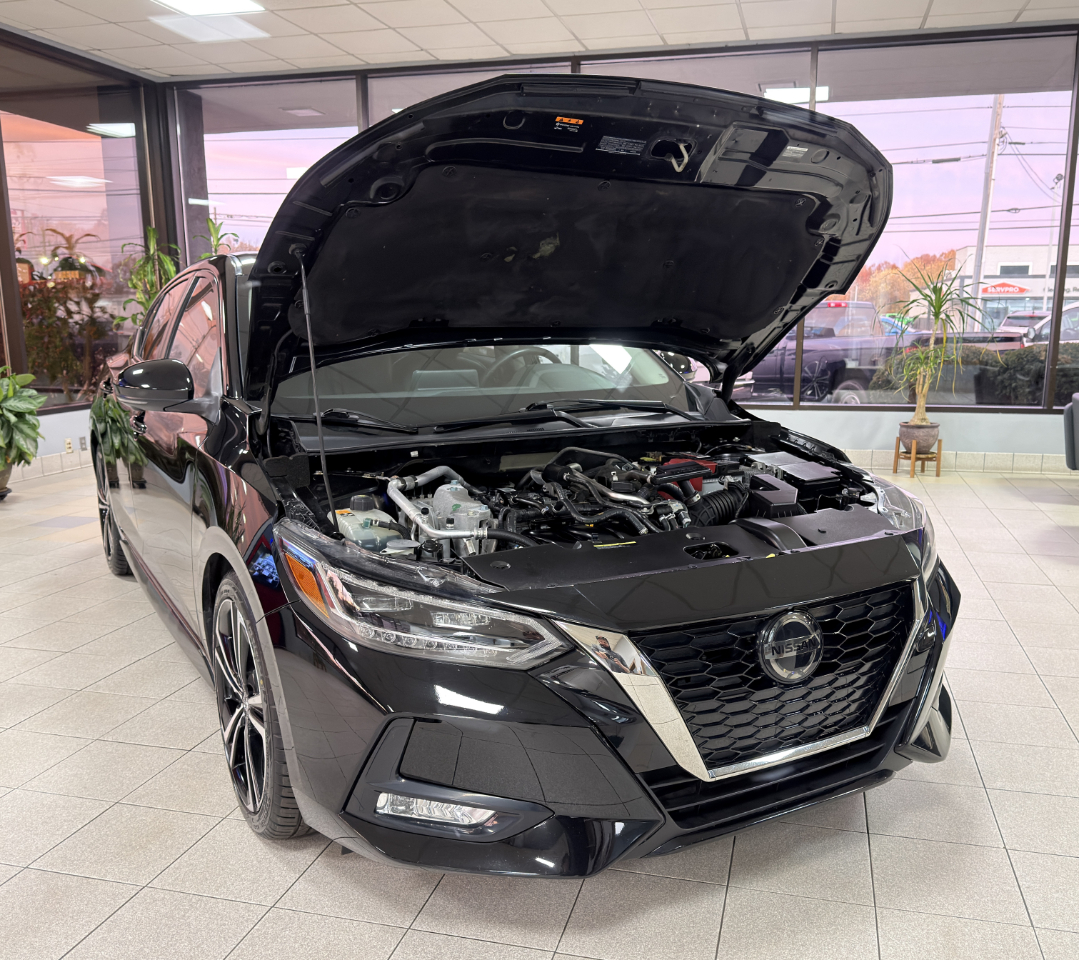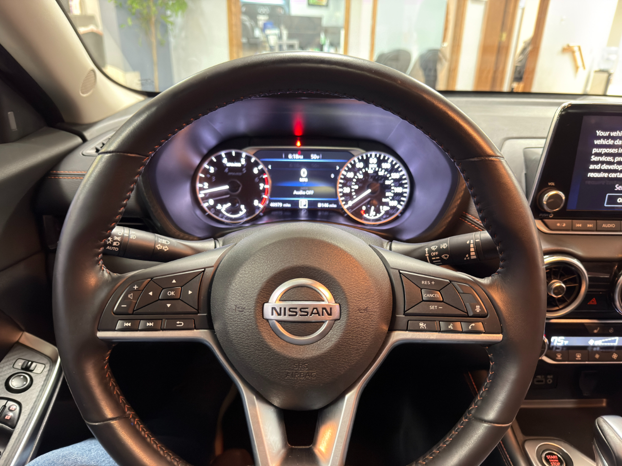 2021 Nissan Sentra with 2.0L 4-Cyl Engine. Equipped with parking sensors, backup camera with top-down view, remote start, blindspot sensors, push to start, leather seats, BOSE premium sound, moon roof, adaptive cruise control, dual zone A/C, heated seats and steering wheel, lane departure warning, automatic emergency braking, touch screen, high beam assist, keyless entry, power windows, power locks, power driver's seat, fog lamps, Apple Carplay, Android Auto, AUX, USB, Bluetooth, and more! Standard 28/37 city/highway MPG with only 40k miles!